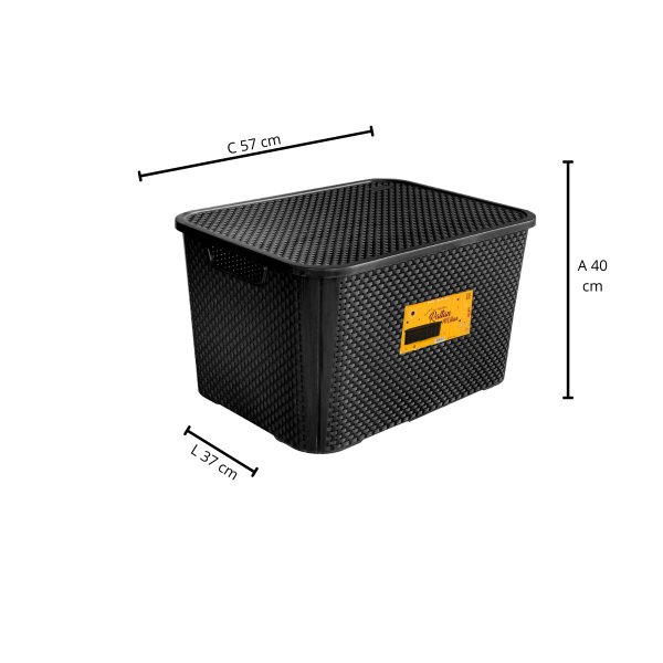 Caixa Organizadora Cesto Multiuso 70 Litros Preto Com Tampa Empilhavel Rattan