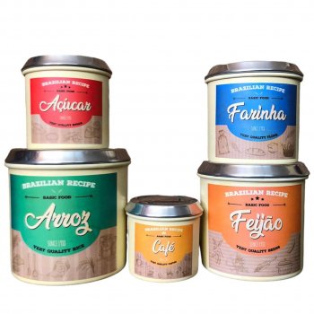 Kit Pote Mantimento em Aluminio 5 Peças Decorado Bege Colorido