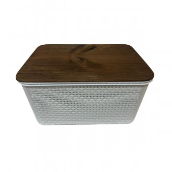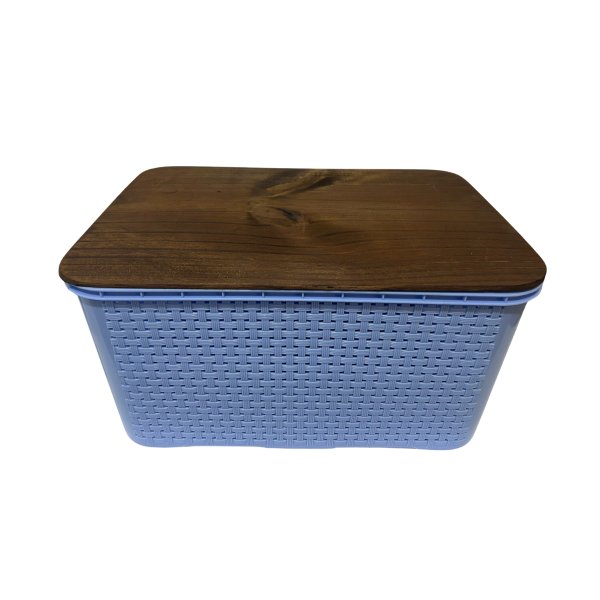 KIT 02 CAIXA ORGANIZADORA DE 18L RATTAN COM TAMPA DE MADEIRA DE PINUS