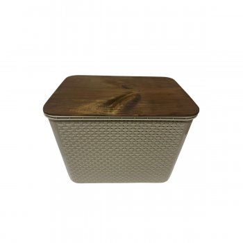 CAIXA ORGANIZADORA DE 26L RATTAN COM TAMPA DE MADEIRA Linha de caixas organizadoras rattan com design inovador, ideal para proporcionar praticidade para seu dia a dia. Modelo gaveteiro com tampa vasado, deixando o visual ainda mais bonito e atual. - Plástico resistente; - Tampa em Madeira removível e fácil de utilizar; - Empilhavel; - Sua textura influencia a não criar mofo e nem bolor. DIMENSÕES DO PRODUTO: Altura: 26,5 cm; Comprimento: 38 cm; Largura: 28 cm;