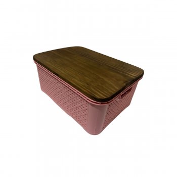 CAIXA ORGANIZADORA 10 LITROS RATTAN COM TAMPA DE MADEIRA PINUS