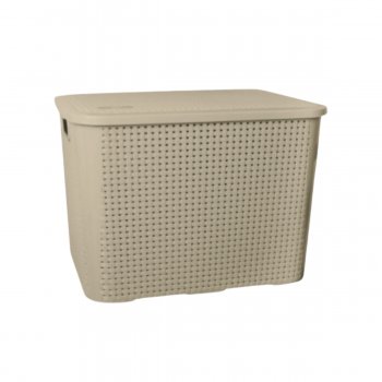 Caixa Organizadora Cesto Multiuso 26 Litros Com Tampa Empilhavel Rattan
