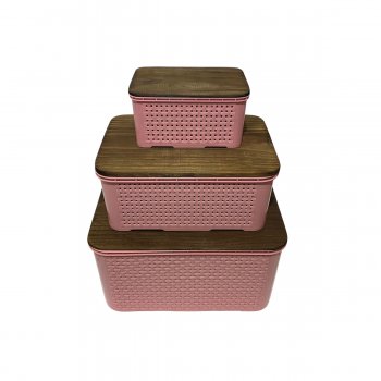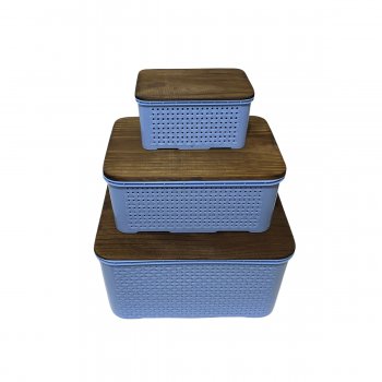 KIT DE 3 CAIXA ORGANIZADORA DE 3L, 10L E 18L RATTAN COM TAMPA DE MADEIRA DE PINUS
