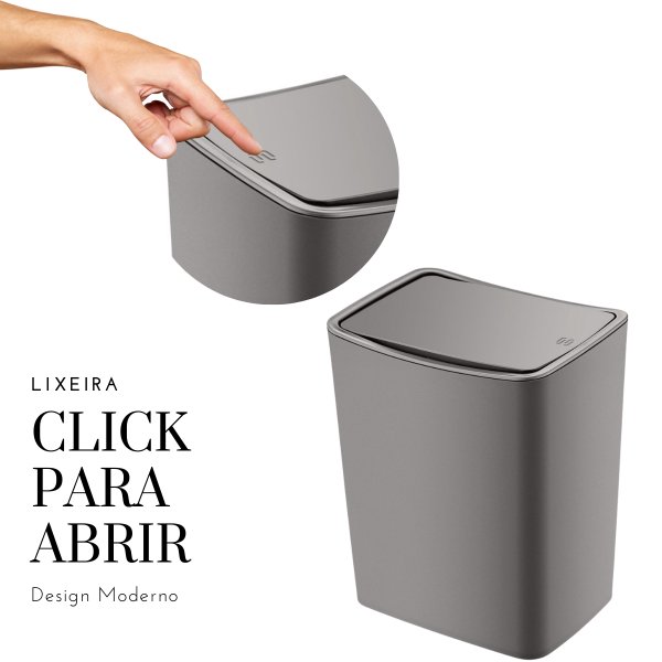 Lixeira 4 Litros Pequena Touch Click para Abrir Cinza Mood Cozinha