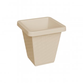 Kit 03 Vasos Rattan Quadrado De Flor De Plástico 14 Litros Vaso Reforçado Para Flores Jardim Decoração Capuccino